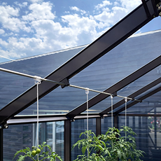 Прутковая нержавеющая система подвязывания равномерно распределяет нагрузку на каркас, что снижает риск растрескивания стекла и упрощает уход за высокорослыми культурами.